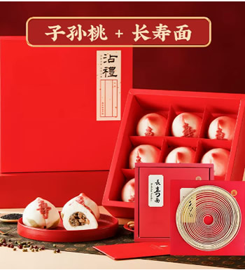 | 组 成 | 寿桃馒头礼盒+长寿面礼盒+如意糕点 |