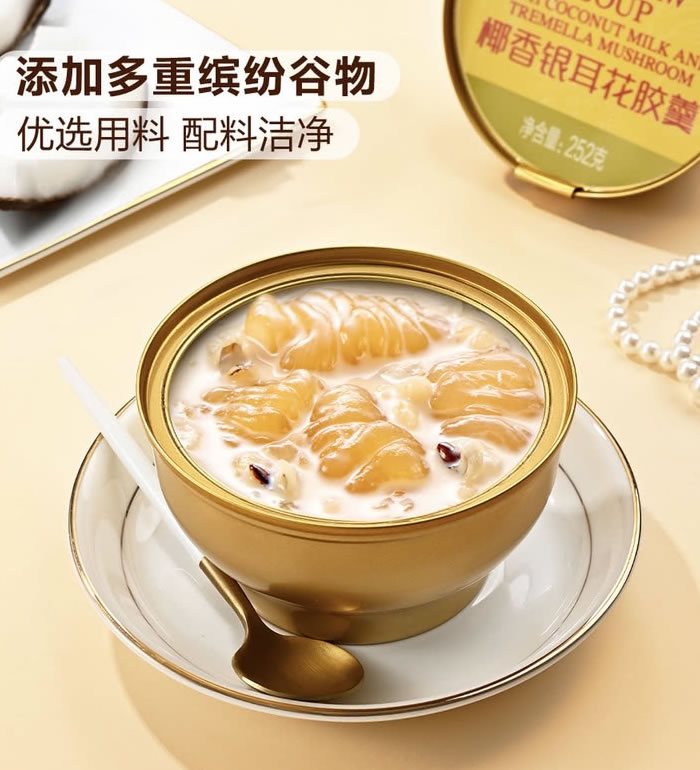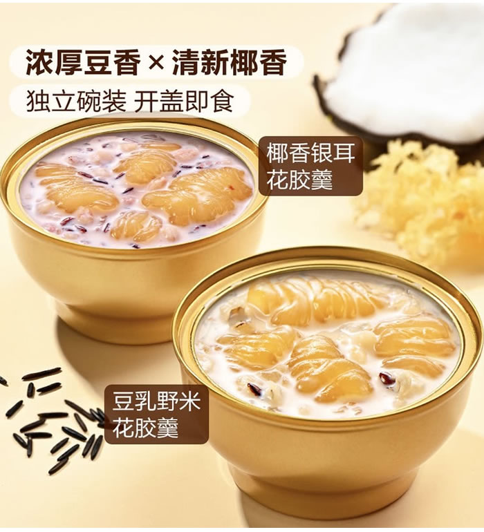 | 规 格 | 豆乳野米花胶羹X4罐+椰香银耳花胶羹X4罐 |