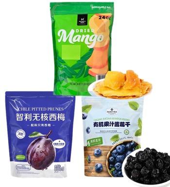 | 容 量 | 智利无核西梅干800g;有机果汁蓝莓干400g;泰国进口芒果干680g |